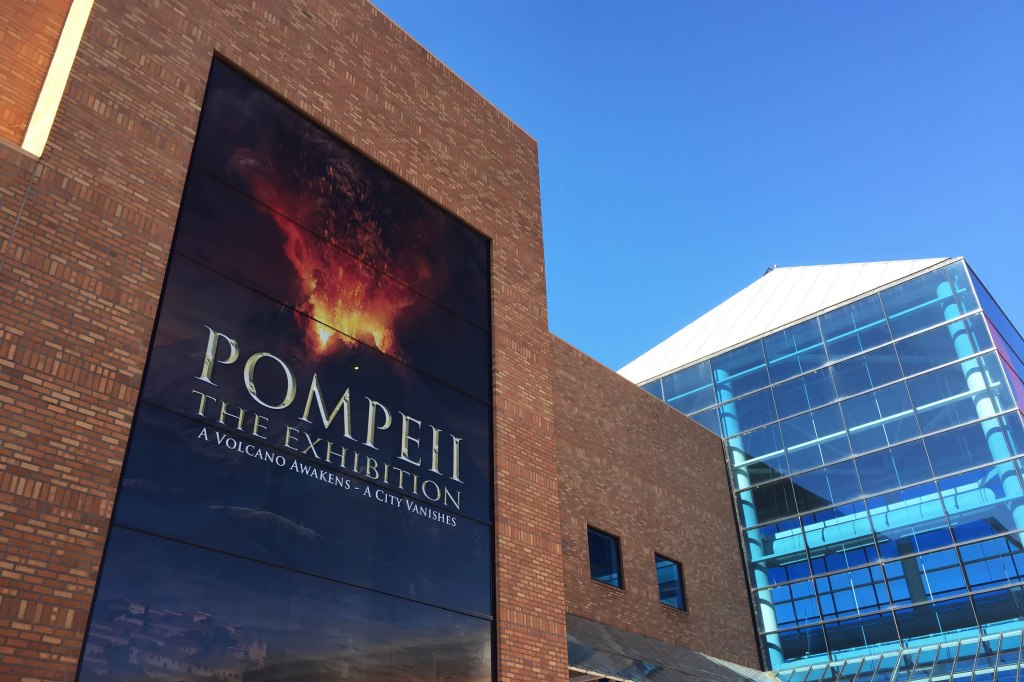 The Pompeii exhibition at the Oregon Museum of Science and Industry is designed to overwhelm. Rooms collapse into vitrines; artifacts accumulate into density; preservation becomes spectacle. A city is rendered legible through volume — stone, plaster, casts, fragments — all insisting on the magnitude of what was lost and what endured.