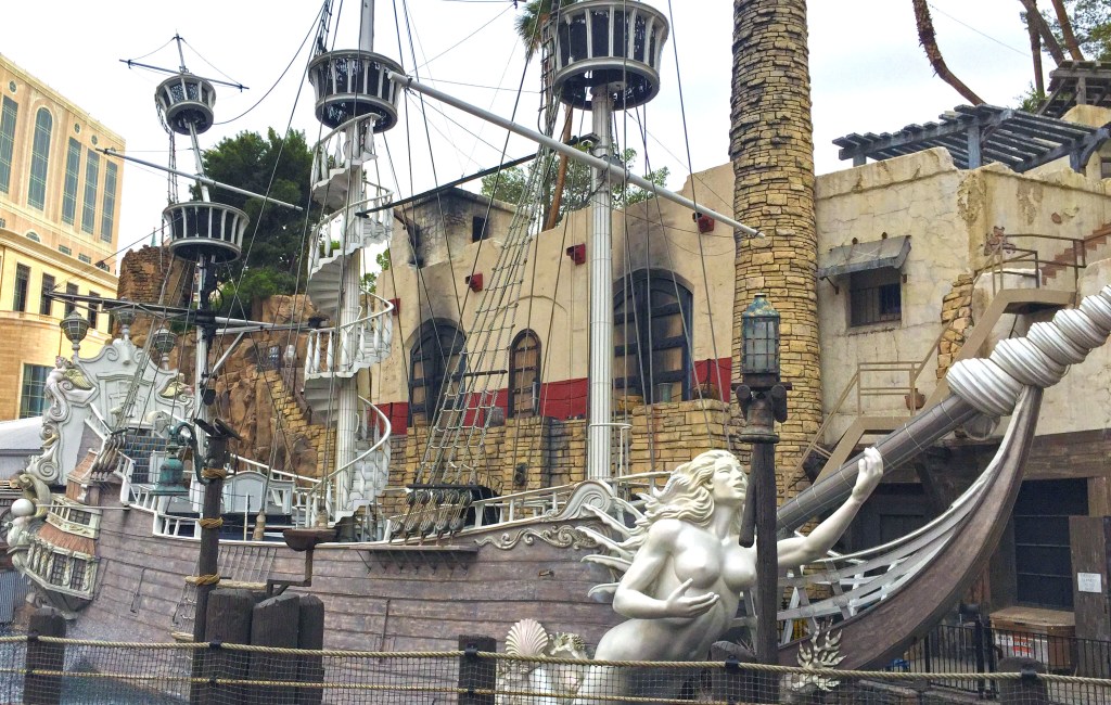 The pirate ship at Treasure Island remains in place, but the show it was built for ended in 2013.