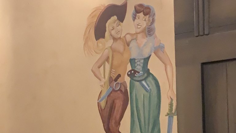 For the average park-goer, the mural is a blink-and-you’ll-miss-it detail, overshadowed by the spectacle of treasure, skeletons, and Captain Redd commanding the show. But Anne and Mary don’t seem to mind.