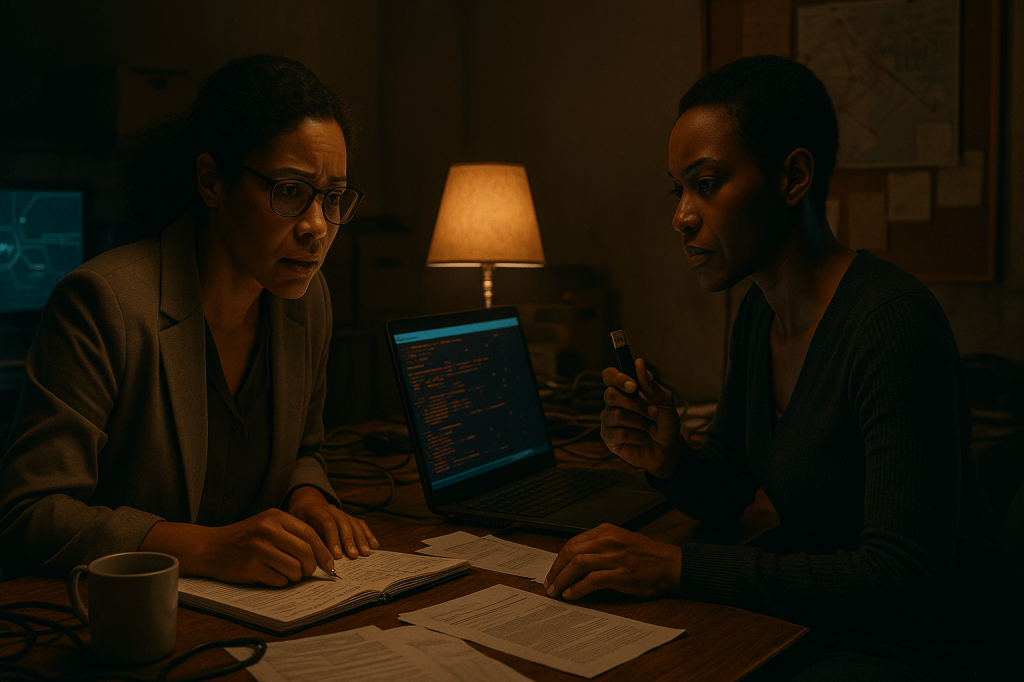 That night, we began. Aisha reached out to an ethical hacker she trusted, their tense video call ending in agreement. I emailed a silenced journalist, attaching encrypted files we’d uncovered. Her response came quickly: “I’m in. Let’s make noise.”