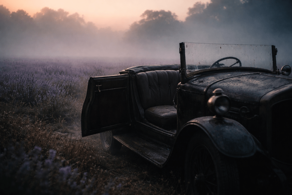 They say a motorcar was found rusting in a lavender field outside Marseille.