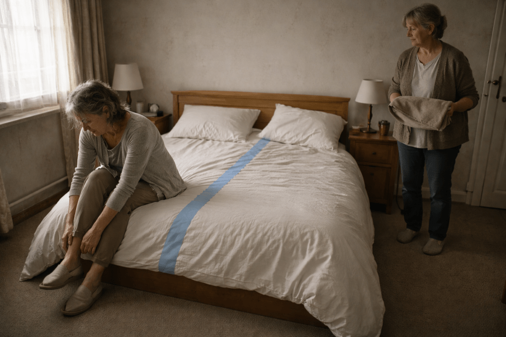 That night, we slept carefully. I did not roll over. She did not steal the blanket. The border remained exactly where someone had decided it should be.