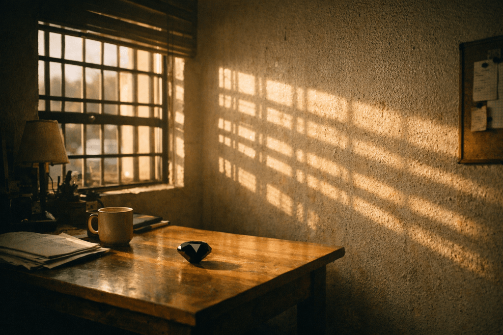 I back away, pulse hammering in my throat. My apartment is too quiet. The city hum outside feels muffled, like I’m standing in a vacuum. I stare at the diamond, willing it to disappear the way it appeared.