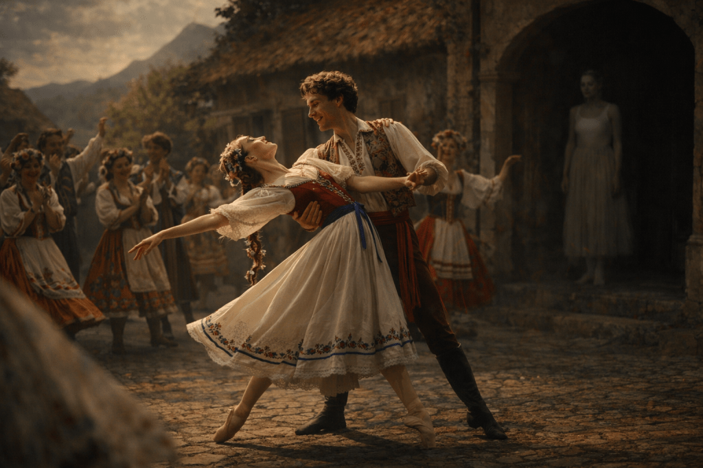 Inspired by the ballet’s haunting stagecraft and the legacy of Expressionist cinema, all accompanying images follow an Expressionist Noir Ballet style — blending shadow play, motion, and myth.