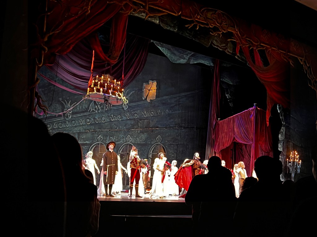 The curtain rose into smoke and shadow. We were in the crypt — a cavernous space haunted by Dracula’s Brides, who moved like forgotten memories brought back to life. Their sharp, deliberate choreography was eerie and beautiful, and then Dracula (performed by Isaac Lee) himself emerged, cloaked in power and silence.