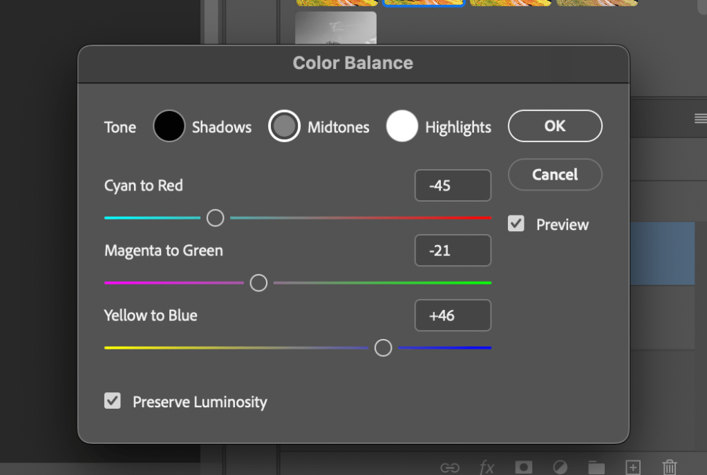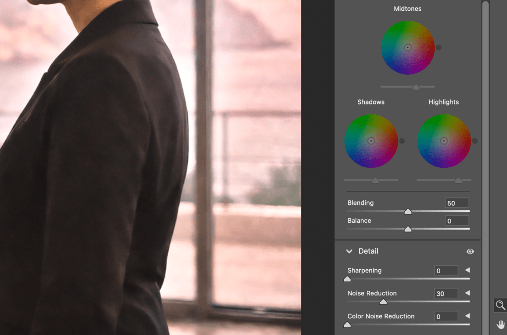 While the image was combined, additional tweaks were needed, which involved adjusting additional Noise Reduction, Color (Midtones, Shadows, and Hightlights) through the Camera Raw Filter.