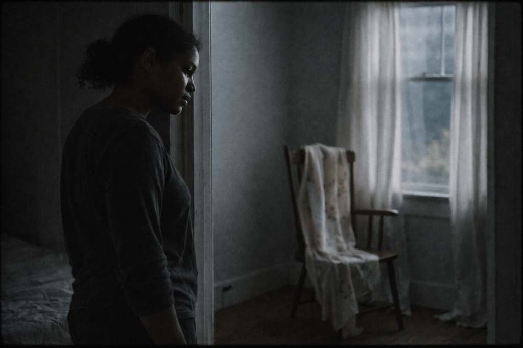 As I moved toward it, I caught my reflection in the dresser mirror — just for a heartbeat. The tilt of the head didn’t quite match mine. Softer, older, wearing something pale at the throat. Then it was gone.