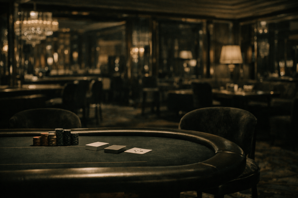 The dealer steps forward, cards prepared, the table aligning itself into the familiar structure of the game. I rest my fingers lightly against the felt, smooth and unmarked, though I know better than to assume it carries no history. Very little in rooms like this ever does.