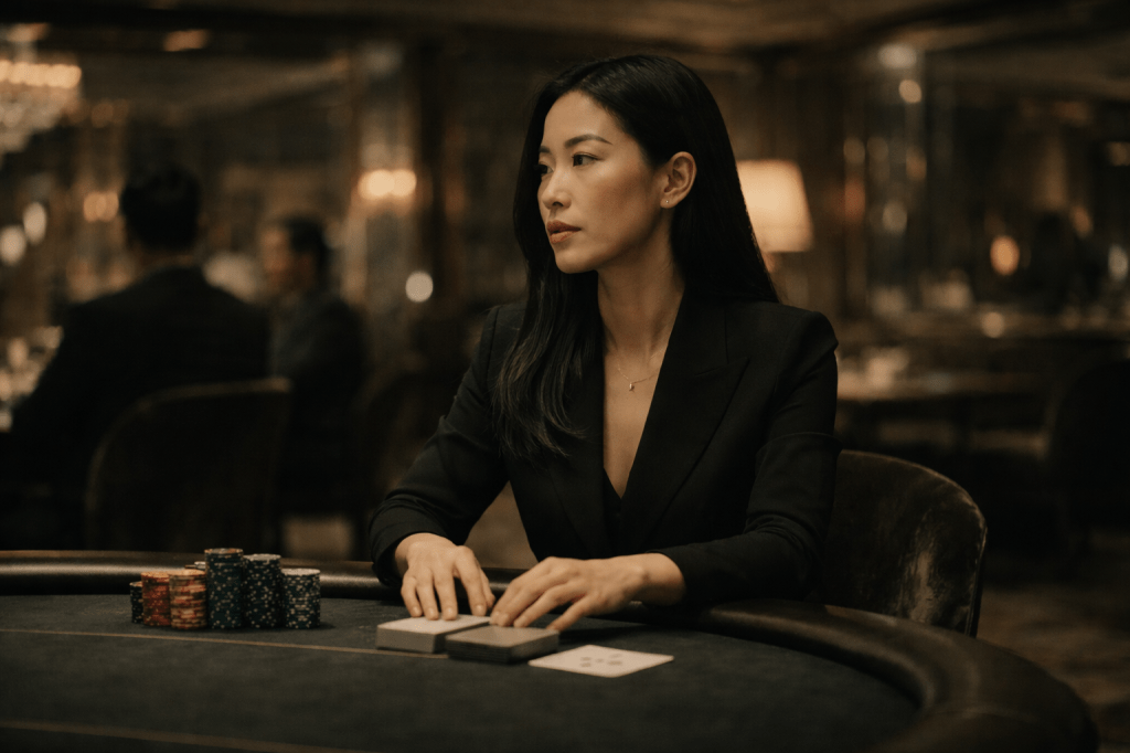 I have played in rooms like this since leaving Singapore, long enough to know the game is rarely about the cards. It is the kind of instinct you learn early, growing up where everything is observed, and very little is said outright. There are rooms where women like us are expected to be quieter than we are.