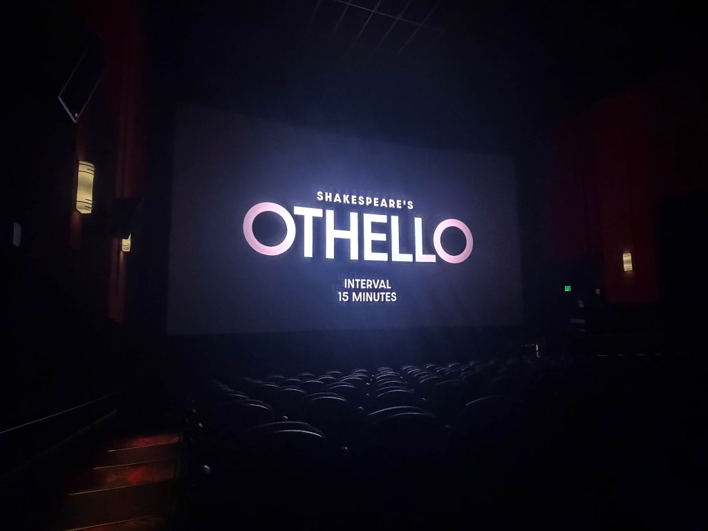 The screening paused for a fifteen-minute intermission. By that point the play had reached the moment when Othello’s suspicion transforms into vengeance.