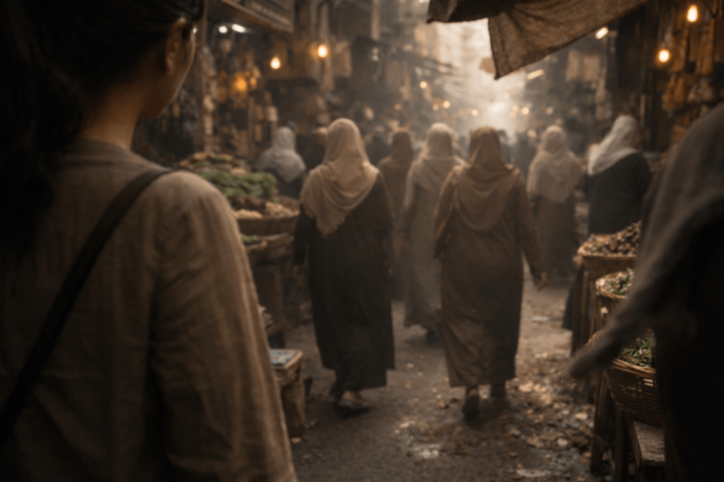 If anything, it was the opposite—the sense, arriving too late to be useful, that I had seen her before, somewhere in the passage in Cairo, where movement carries itself without asking to be seen.
