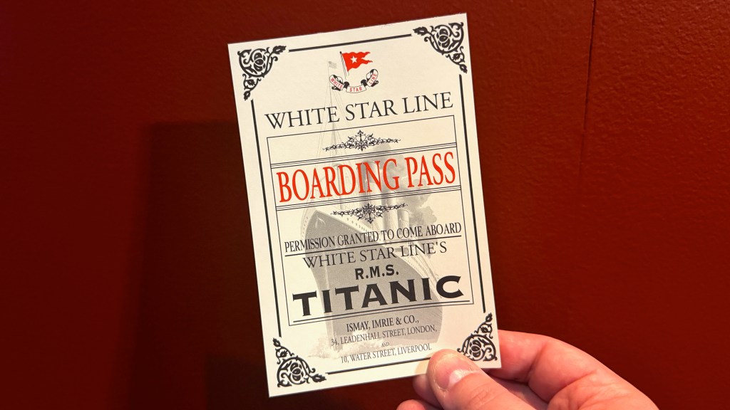 At the entrance, a White Star Line boarding pass is handed over—not a ticket, but a name.