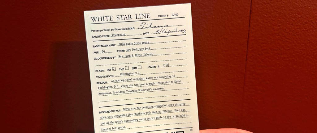 At the entrance, each visitor is given a White Star Line boarding pass. It functions not as a ticket, but as an identity. A name is provided along with age, class, and point of departure. The information is specific enough to establish a presence, but limited enough to remain incomplete.